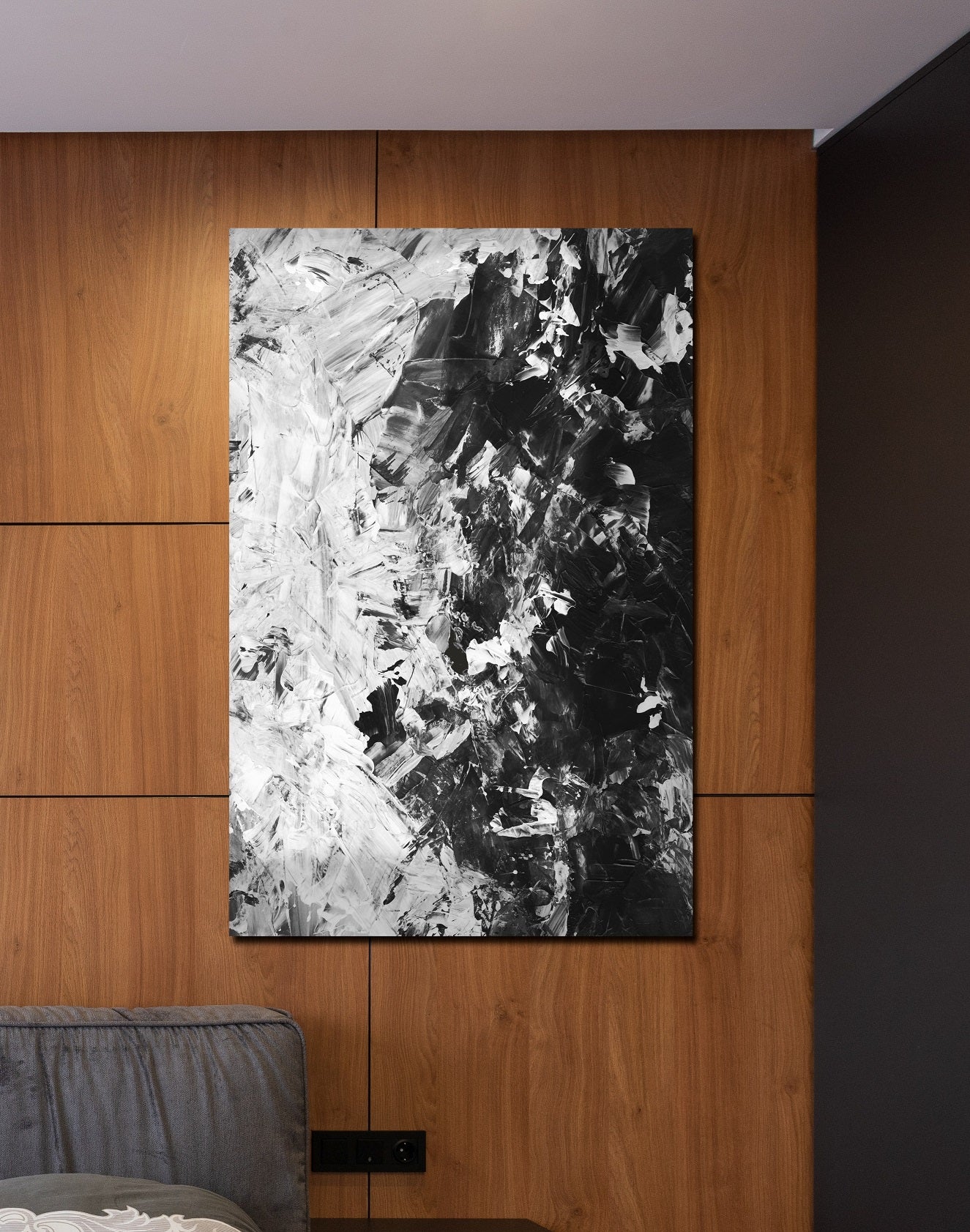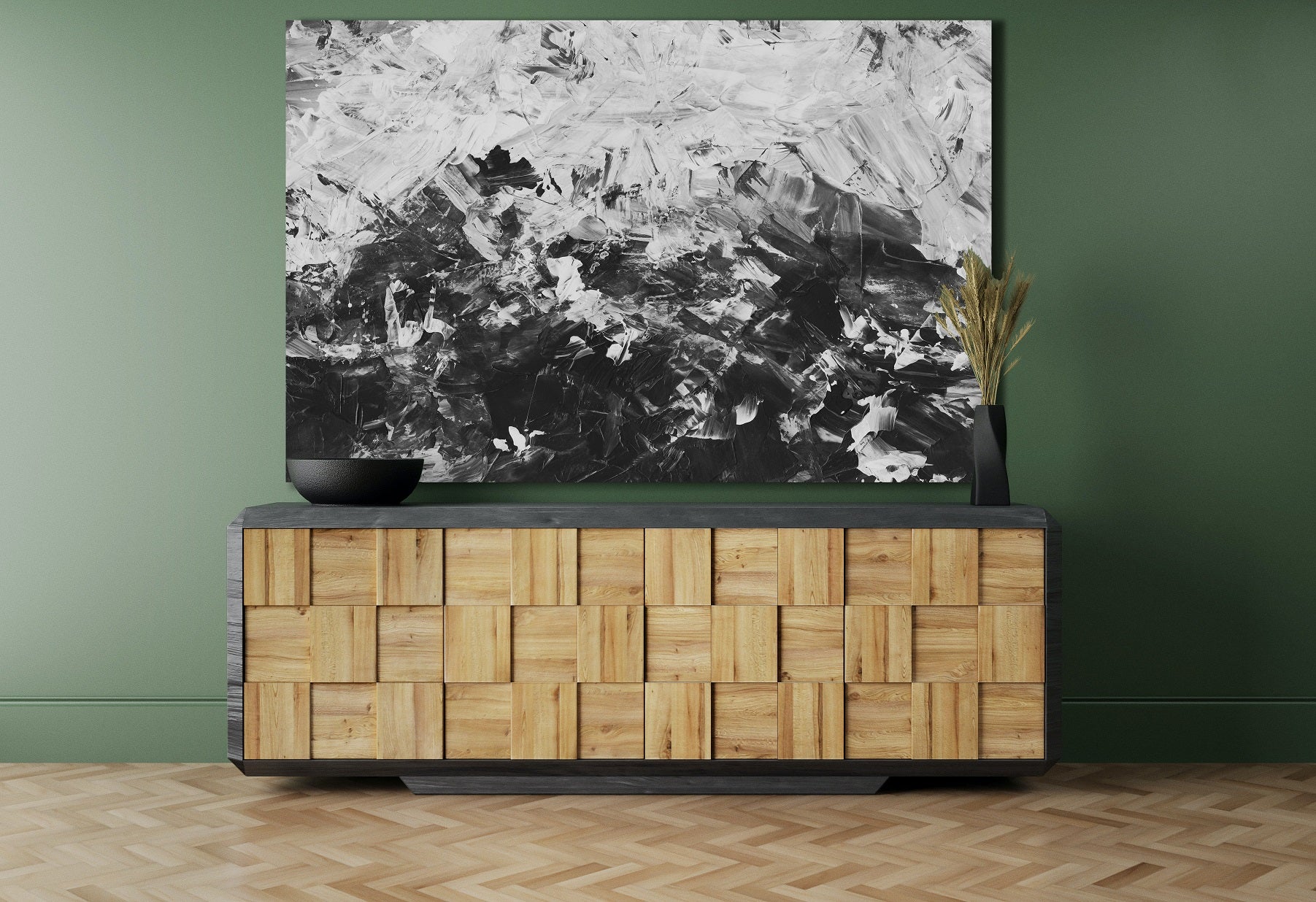 Extra grote akoestische wandkunst. Deze hoogwaardige digitale inkjetprint is akoestisch open, zodat geluid op de absorberende vulling eindigt.